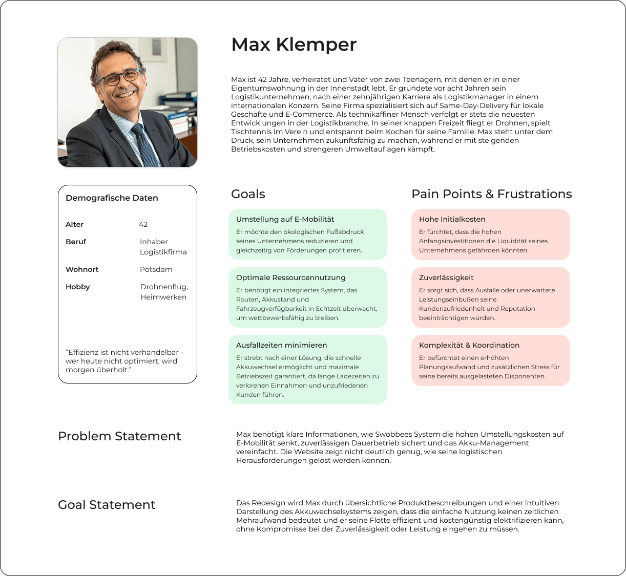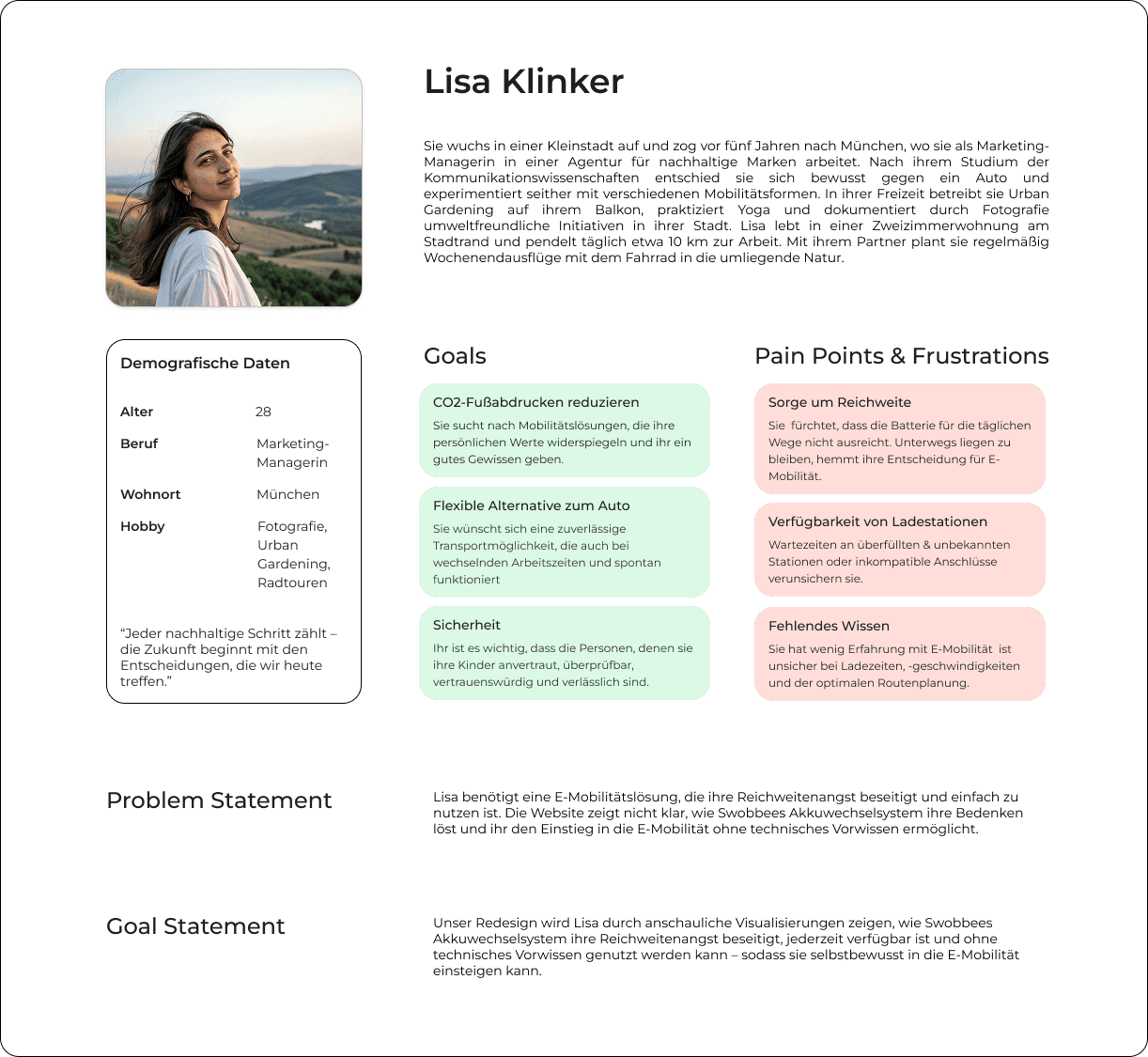 Die Website kommunizierte weder die Markenidentität noch die Produkte klar, hatte eine unstrukturierte Informationsarchitektur und erklärte das innovative, aber noch wenig bekannte Konzept des Batterie-Sharings für nachhaltige Mobilität nicht ausreichend.