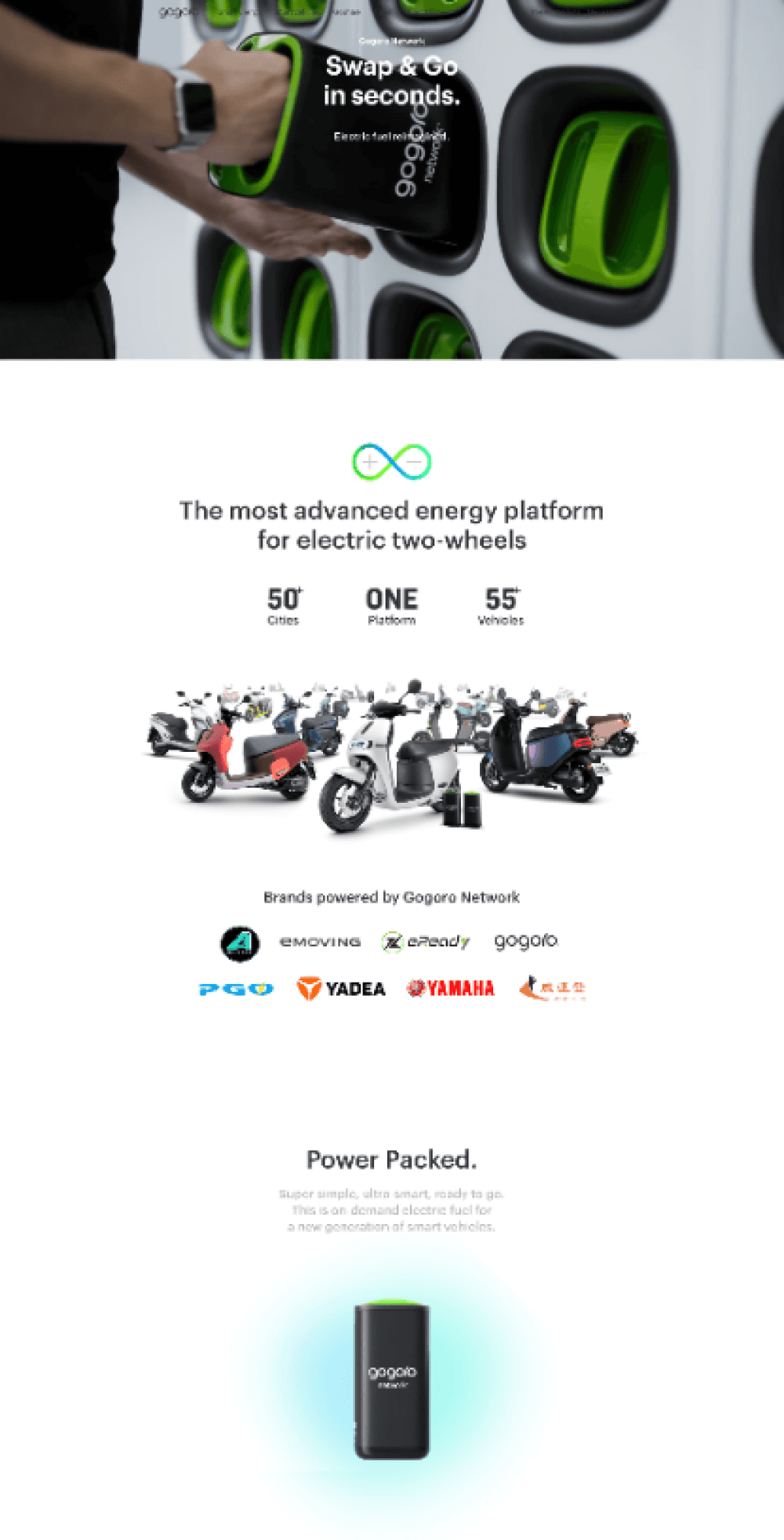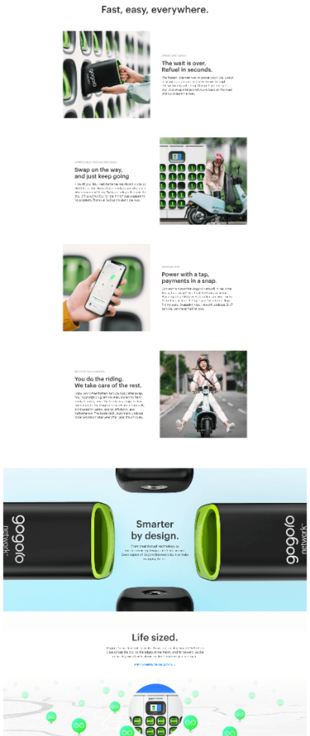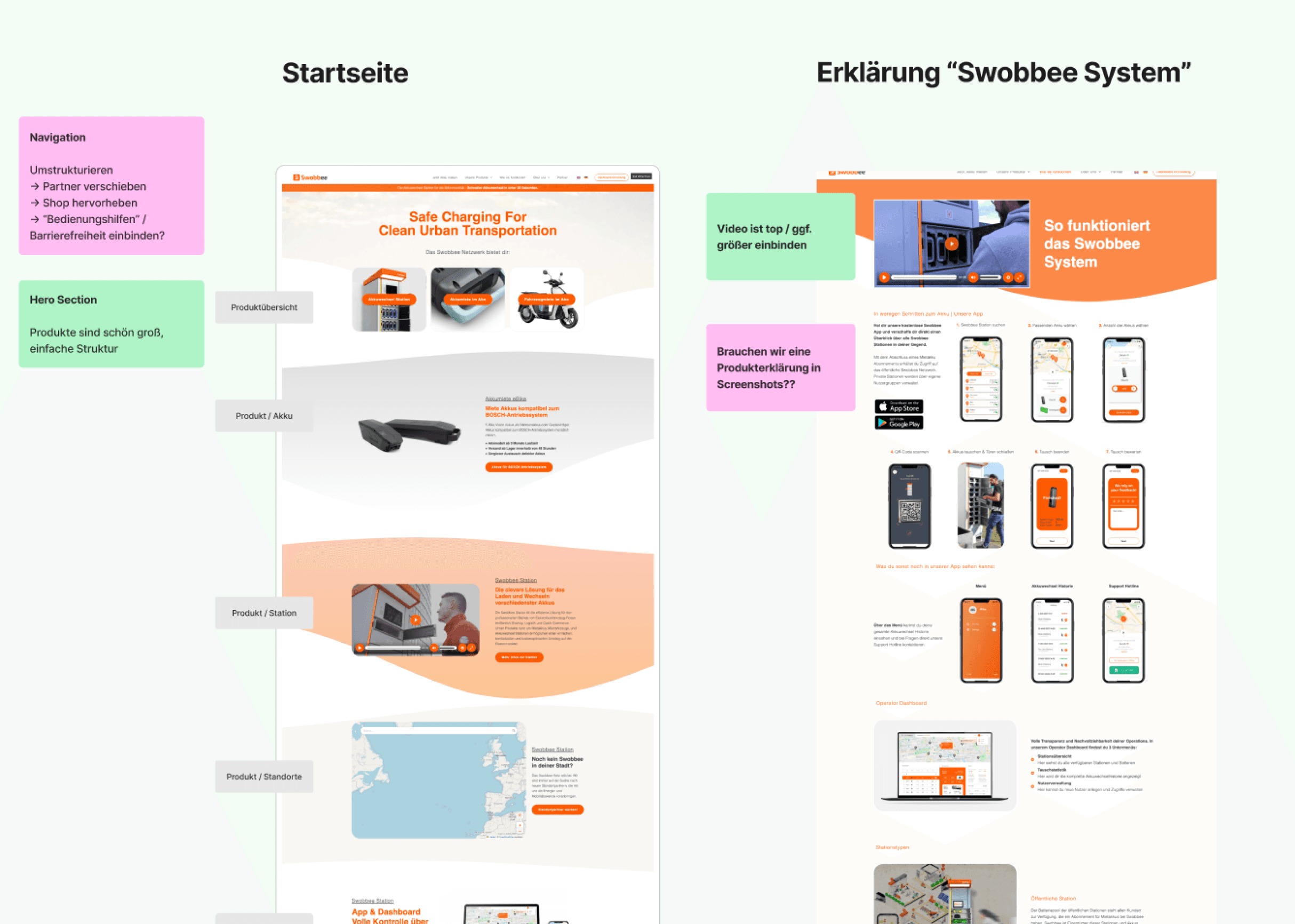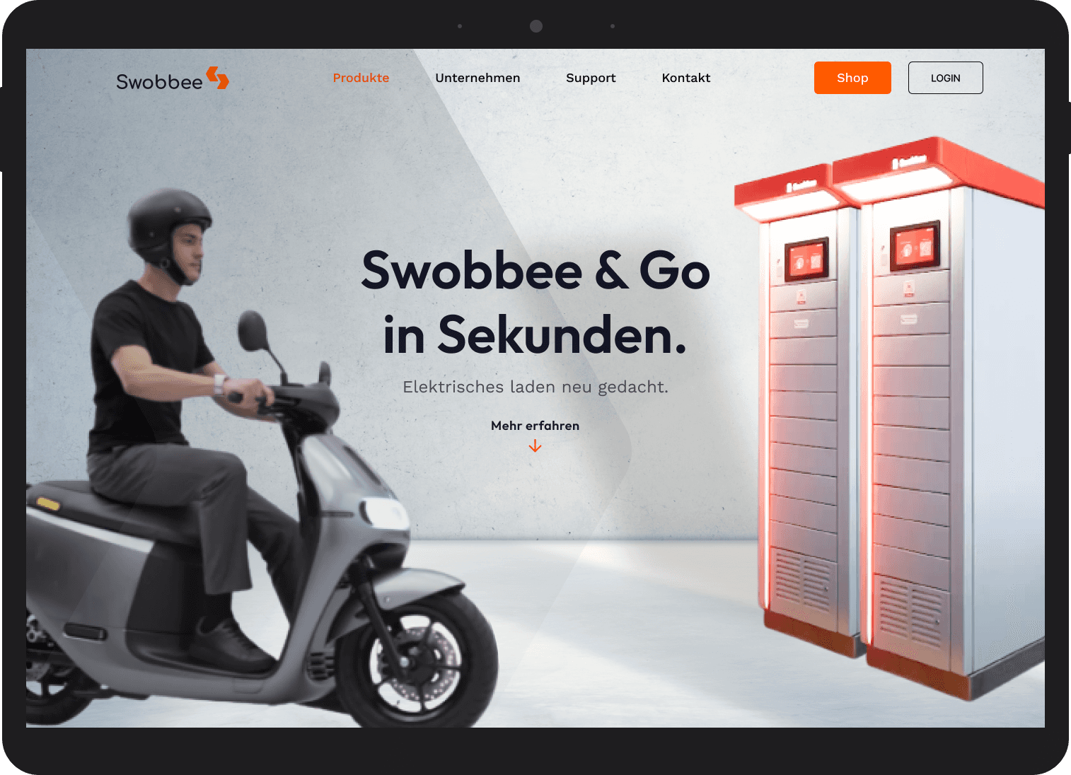Unser Fokus beim Redesign lag darauf, durch informative Elemente das innovative Batterie-Sharing-Konzept verständlich zu erklären, das Unternehmen als Pionier nachhaltiger Mikromobilität zu positionieren und ein intuitives sowie ästhetisches Nutzererlebnis zu schaffen.